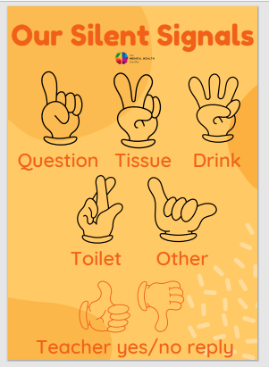 I do have a post on my website, actually, where I’ve made hand signals from the classroom. So there’s one for needing the toilet, there’s one for needing a tissue, one for needing a drink of water. https://cahhlmclasses.com/resources/ols/products/silent-signals-a3-digital-poster